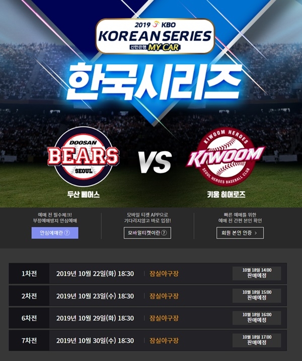 2019 한국시리즈 예매 일정 확정 잠실 경기만 예매 가능 고척 경기는 언제 열리나
